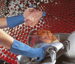 Konforlu ve gıda uyumlu, floklu doğal bir kauçuk, yeniden kullanılabilir lateks eldiven.