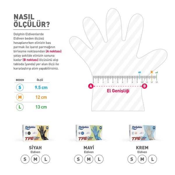 Dolphin Mavi TPE Eldiven, hafif ve ince yapısı ile hassas işler için idealdir. Elin şeklini alarak rahat hareket imkanı sunar ve her iki el için de uygundur.