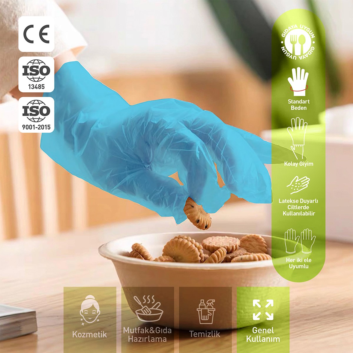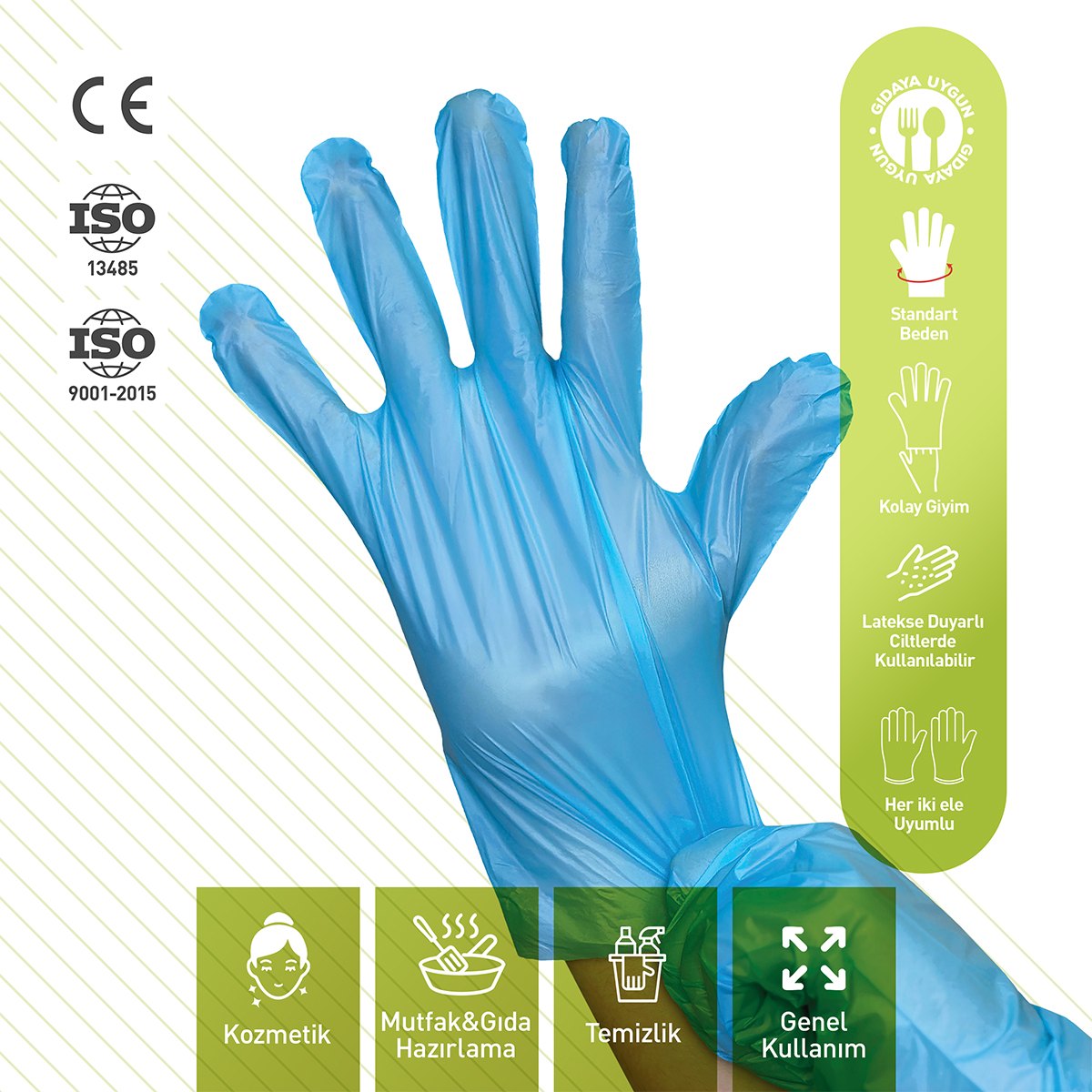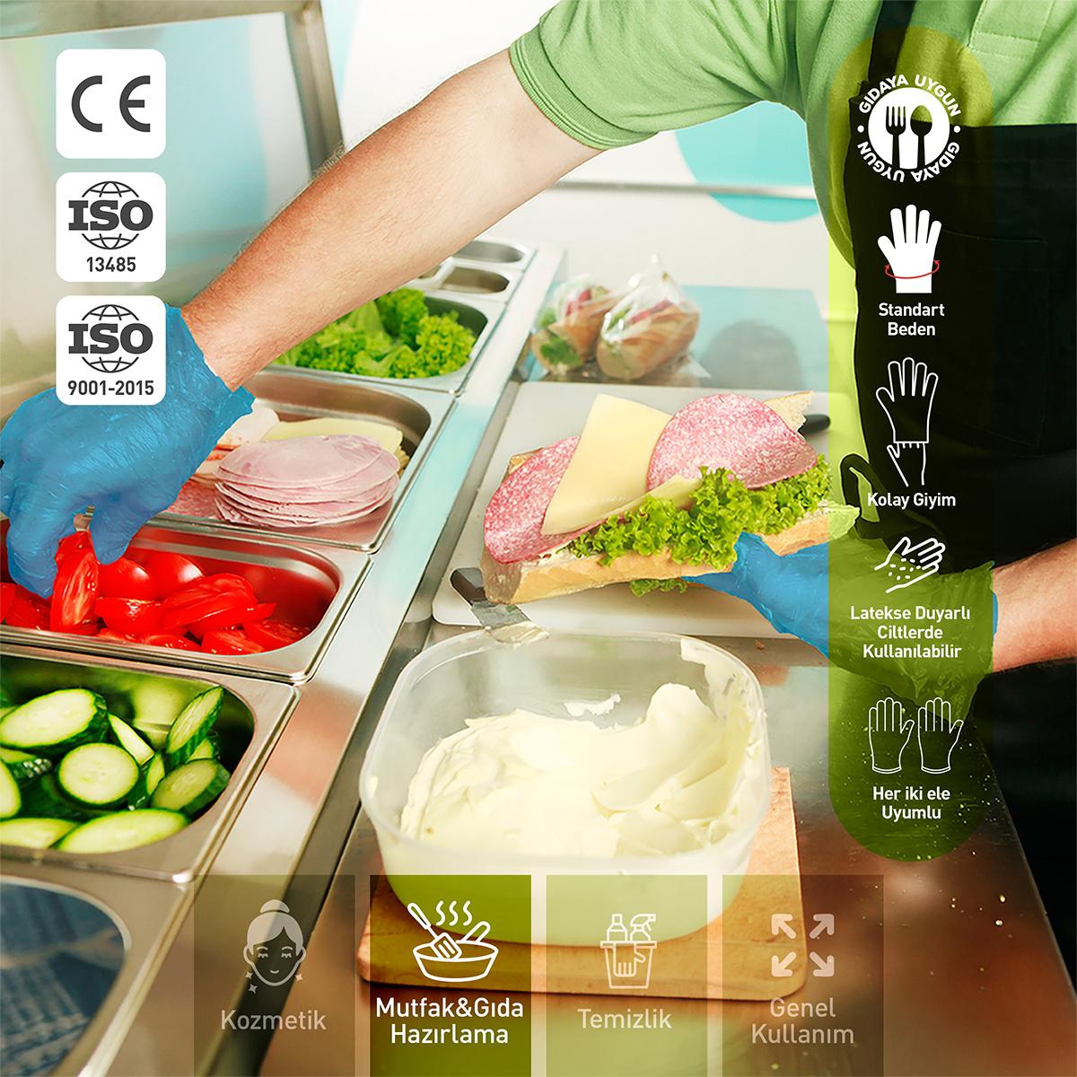 Dolphin Mavi TPE Eldiven, hafif ve ince yapısı ile hassas işler için idealdir. Elin şeklini alarak rahat hareket imkanı sunar ve her iki el için de uygundur.