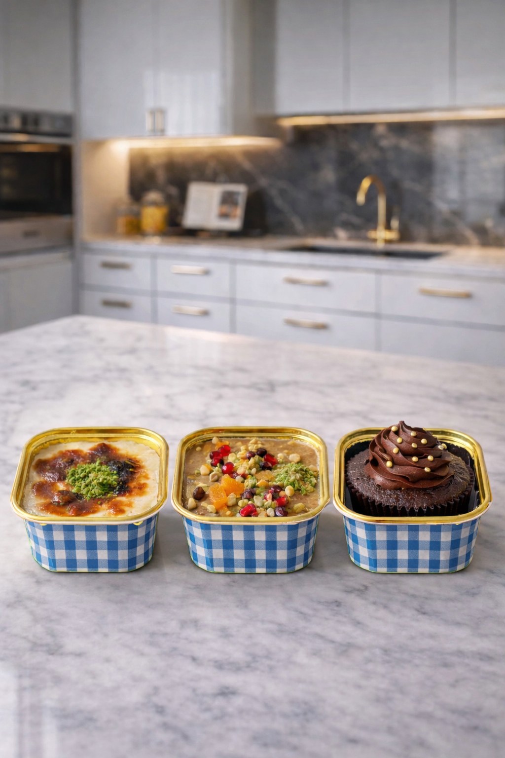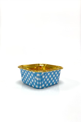 Dolphin Muffin Kek Kapsülü Kare Pötikare Mavi-Altın 25'li