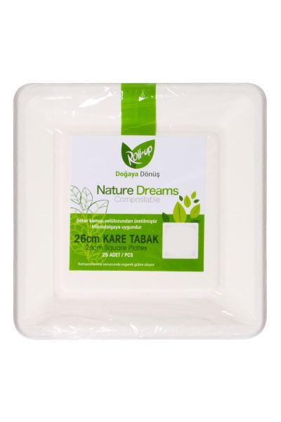 Roll-Up Doğaya Dönüşümlü Kare Tabak 26cm 25li