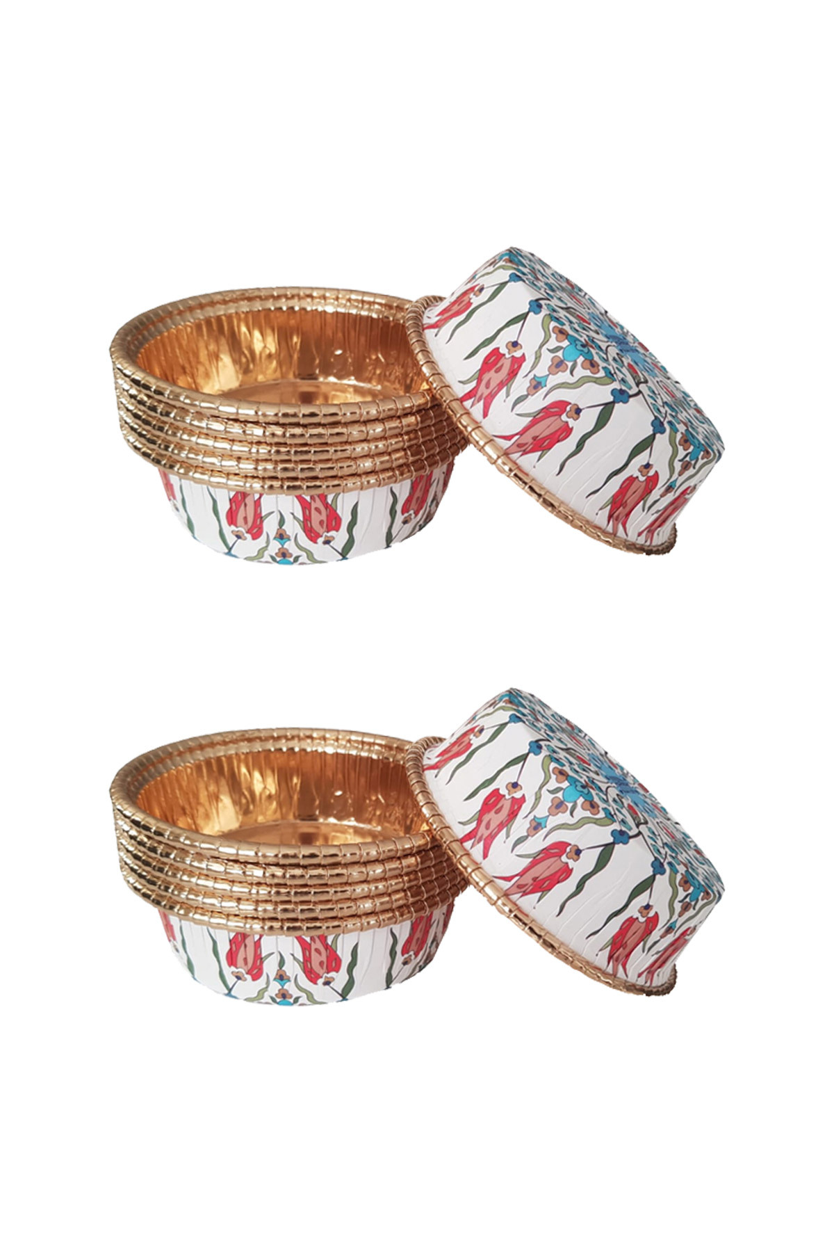 Roll-Up Premium Lale Desenli Beyaz Yuvarlak Tatlı Kase,Özel tasarımı ve dayanıklı yapısıyla şık sunumlar için vazgeçilmez bir üründür. 11 cm çapında ve 4 cm yüksekliğindeki bu kase, -13°C ile 220°C arasında ısıya dayanıklıdır. Hem sıcak hem de soğuk yiyeceklerde güvenle kullanılabilir.Gri zemin üzerine zarif beyaz desenlerle süslenmiş dış yüzeyi, sunumlarınıza zarafet katarken; altın yaldızlı iç yüzeyi tatlılarınıza estetik bir dokunuş kazandırır. Aşure, muhallebi, sütlaç, irmik tatlısı gibi geleneksel ve modern tatlı sunumlarında şıklığı ön plana çıkarmak isteyenler için idealdir.Tek kullanımlık olan bu ürün, hijyenik sunum kolaylığı sağlarken organizasyonlarda, davetlerde ve özel günlerde vakit tasarrufu da sunar.Ürün Özellikleri:Marka: Roll-UpÜrün Tipi: Kare Tatlı KasesiAdet: 12’li PaketÖlçü: 11 cm çap x 4 cm yükseklikKullanım Alanı: Tatlı, aşure, zeytinyağlı, meze sunumlarıIsı Dayanımı: -13°C ile 200°C arasındaÖzellikler:Tek kullanımlıkZarif gri desenli dış yüzeyAltın renkli iç kaplamaŞık ve pratik sunumMikrodalga ve fırına uygun (kısa süreli kullanımda)Gıda ile temasa uygundur